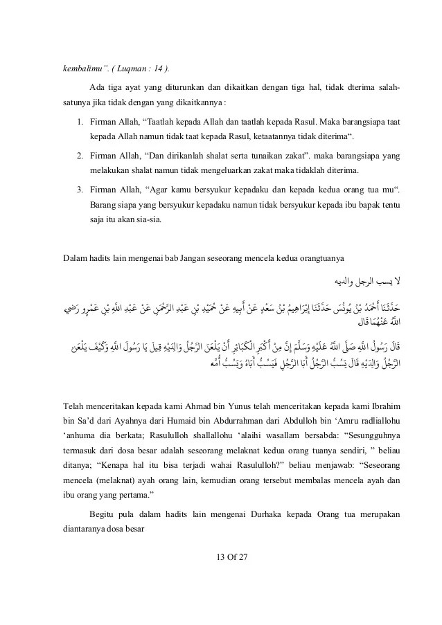 Seorang anak itu haruslah berbakti dan berbuat baik kepada orang tua mengasihi menyayangi menghormati mendoakan taat dan patuh terhadap apa yang mereka perintahkan termasuk melaksanakan hal hal yang mereka sukai yaitu kewajiban yang harus dilakukan oleh setiap anak kepada. Berbakti kepada kedua orang tua dapat menjadikan kita dimasukkan ke jannah surga oleh allah swt. Apabila suatu perbuatan yang dilakukan orang tua dan kita membenci perbuatan itu sikap kita yang benar adalah a. Manfaat berbakti kepada kedua orang tua dalam islam. Selalu berbakti kepada kedua orang tua, karena kedudukan orang tua di dalam islam sangatlah istimewa. Mengapa kita harus hormat dan patuh kepada bapak dan ibu guru. Aug 26, 2021 · yang termasuk cara berbakti kepada kedua orang tua dan guru adalah. Bahkan saking pentingnya perintah ini, perintah berbakti kepada kedua orang tua disebutkan setelah perintah menyembah allah dan tidak menyekutukannya. Apa maksud allah menyampaikan perintah berbuat baik kepada orang tua bersamaan dengan perintah hanya beribadah kepada allah swt? Soal pai bab berbakti kepada orang tua. Aug 20, 2020 · soal essay 1 5 1. Dalam al quran, allah subhanahu wa ta'ala memerintahkan setiap hambanya untuk berbakti kepada orang tua. Menolak dengan santun dan lemah lembut 16.